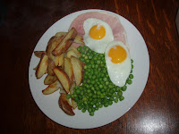 Homecooked: Organic Ham - Handcut Chips - Eggs from my Bantam Hens - Peas